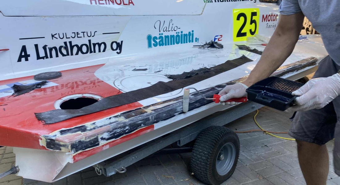 The damage was significant, however Lehto’s team have been repairing the boat in Vila Velha de Ródão today as our pictures show and the boat back will be in racing condition for Sunday’s championship finale.